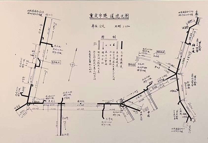 重庆防空大隧道1941年平面分布图。市人民防空办供图