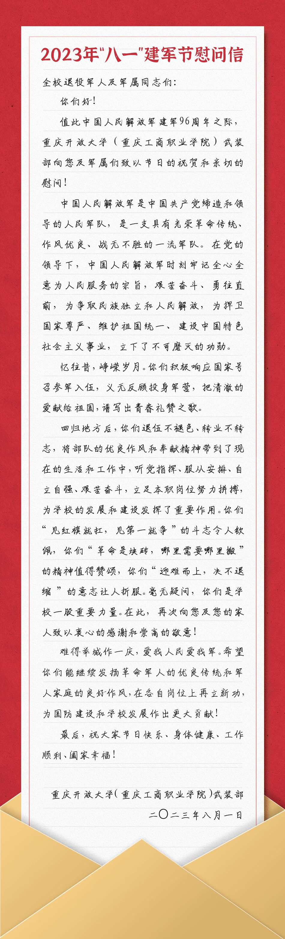 【征兵宣讲】八一建军节|致全校退役军人及军属同志们的一封信
