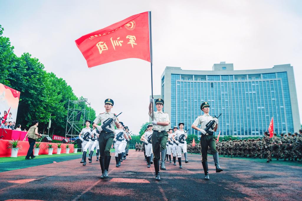 在雄壮的国歌声中,军训成果汇报大会拉开帷幕。在团旗指引下,分列式各方阵踏着整齐的步伐、喊着嘹亮的口号,依次走过主席台。随后,军体拳、擒敌拳、棍术、战术、匍匐刀、匕首操、手语操等方阵也陆续进行了精彩表演。