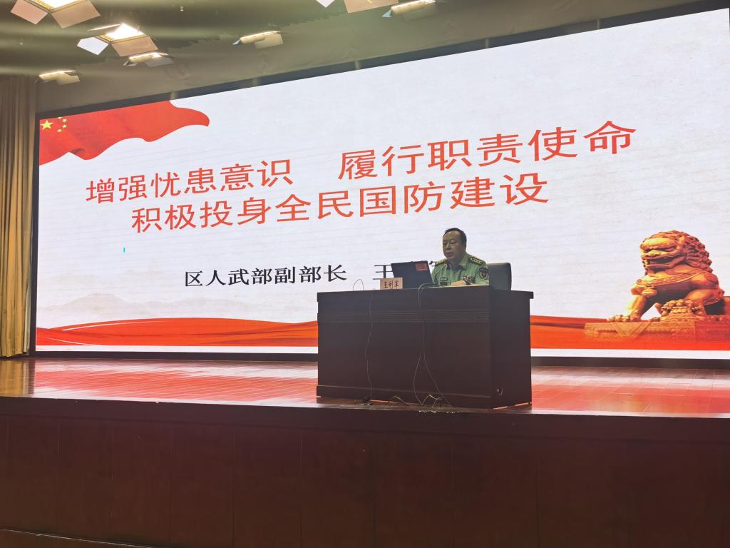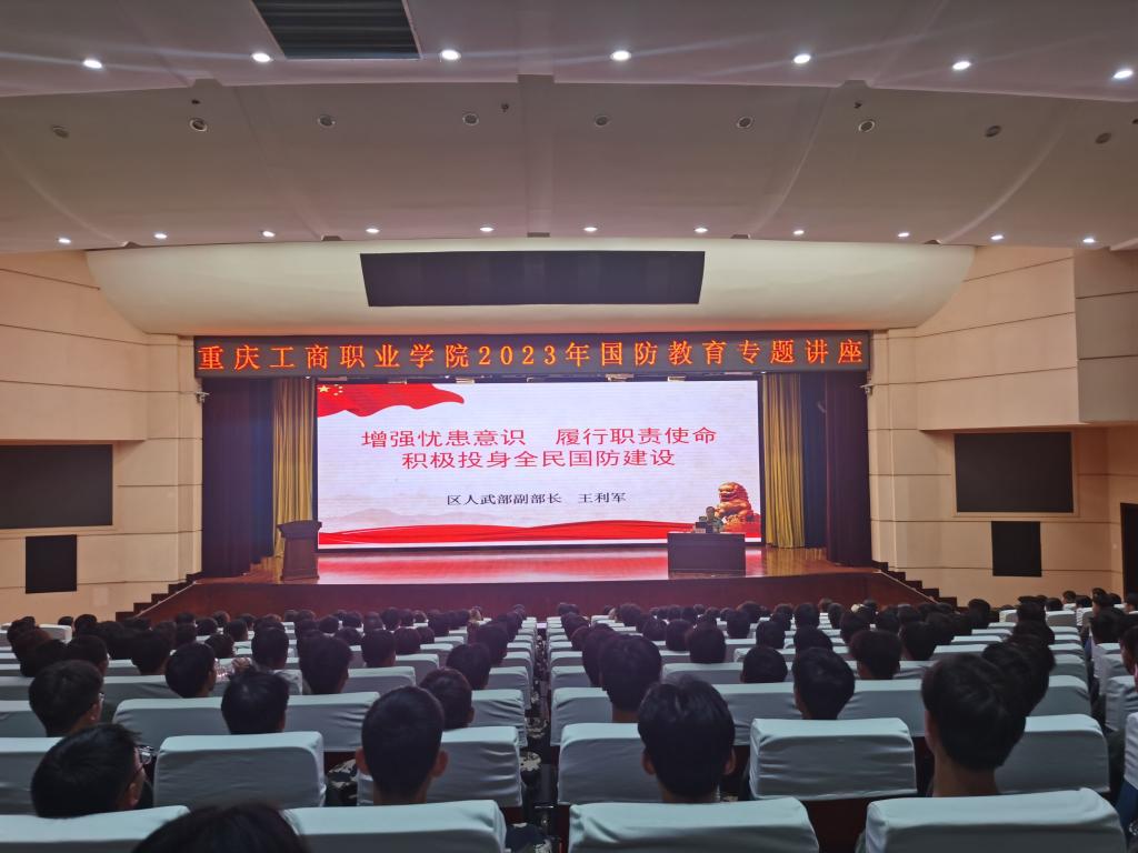 6月27日,我校邀请了中国人民解放军重庆合川区人民武装部副部长王利军上校、军事科科长周超强中校分别为两校区2022级学生开展了国防知识讲座。