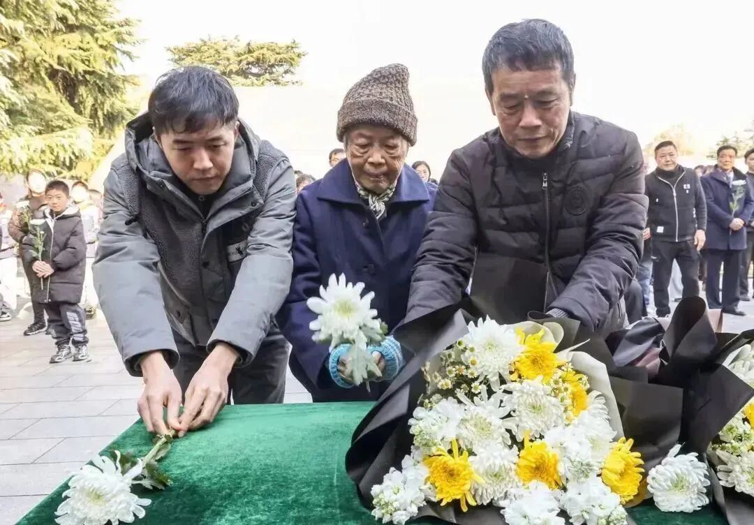 夏淑琴向遇难同胞献花。