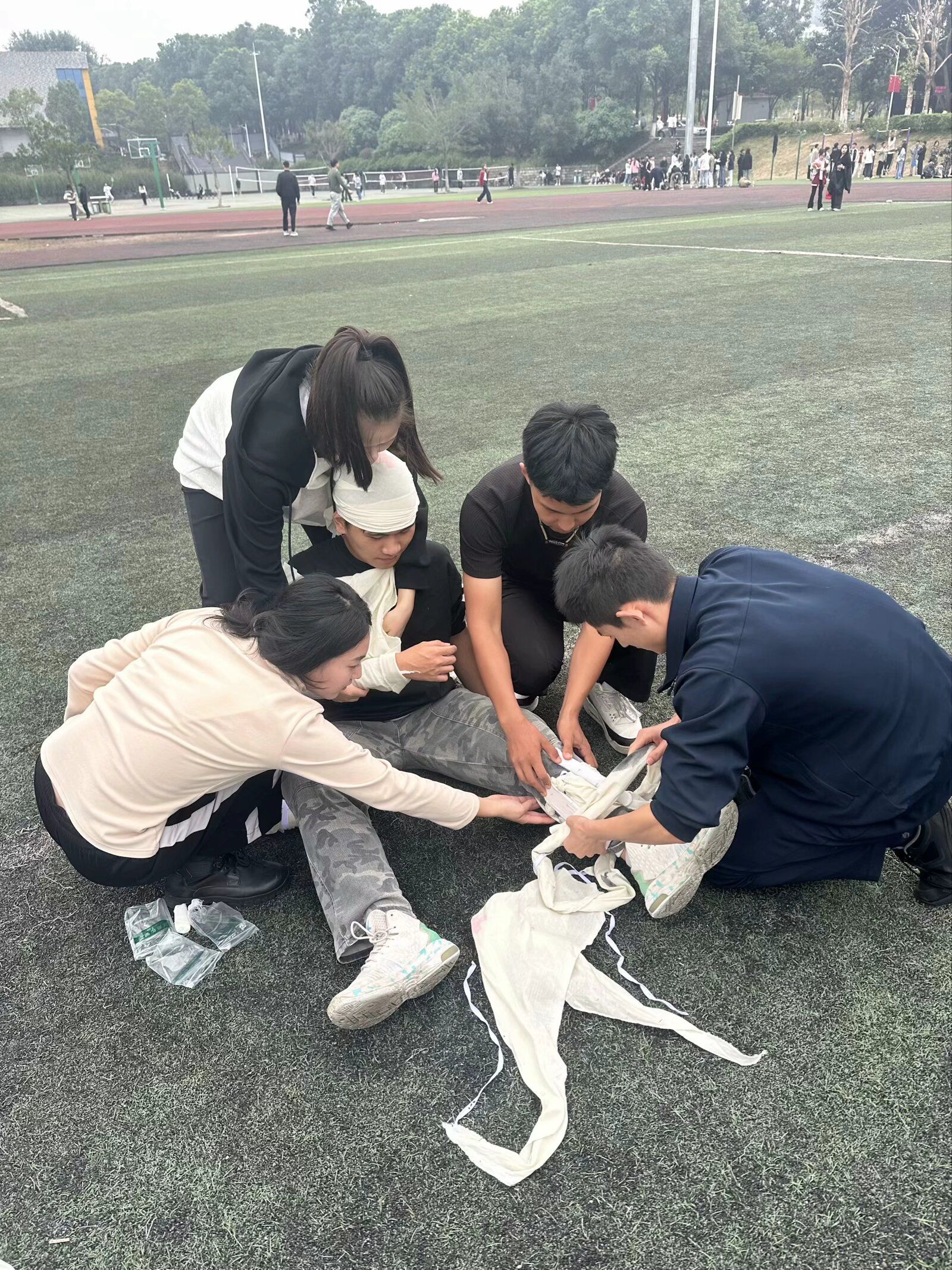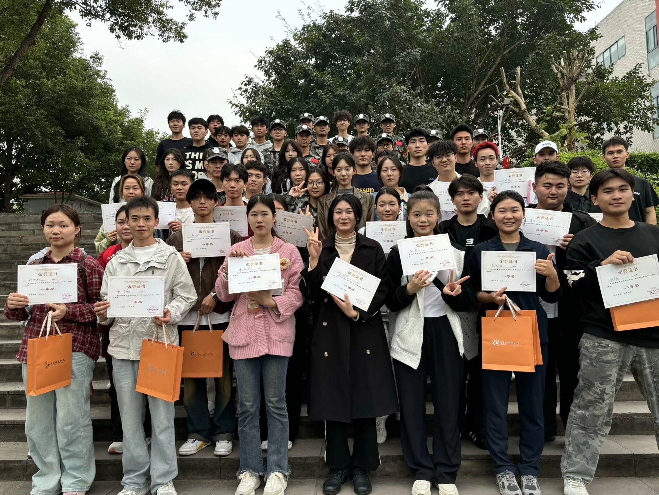 本次活动由各学院学生三男两女为一组自行组队,共有14支队伍参赛,包含理论测试、基础体能测试、叠军被、手榴弹投准、战场救护、4X100米负重接力跑等六个比赛项目。经过激烈角逐,最终传媒学院代表队、城建学院代表队获得一等奖。