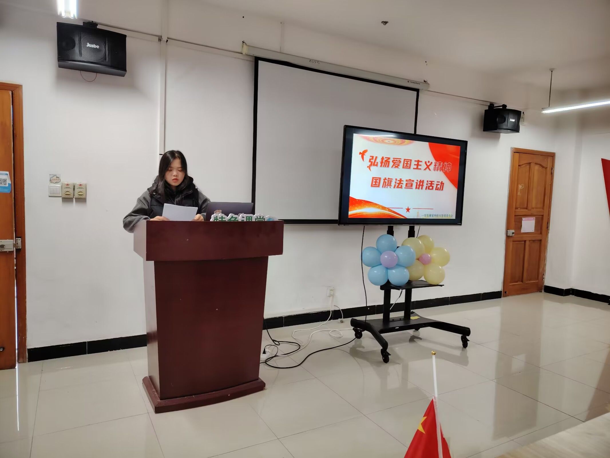 为增强学生的国家观念和法律意识,弘扬爱国主义精神,我校于2024年11月20日,在学生社区举办了一场国旗法宣讲活动,吸引了众多学生前来参加。