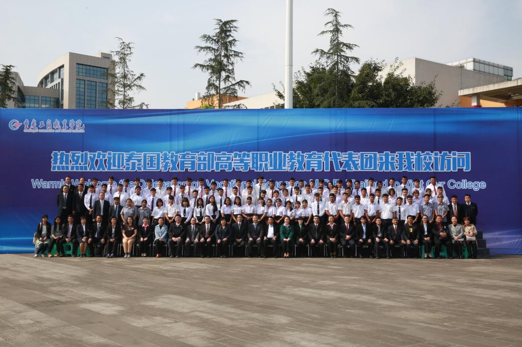 2018年3月19日下午,我校首批泰国留学生开学典礼在合川校区科学会堂举行。出席开学典礼的除了泰国教育部高等职业教育代表团一行21人外,还有来自泰国8所职业学院的83名泰国留学生,他们将分别在我校智能制造与汽车学院、城市建设工程学院、电子信息工程学院、传媒艺术学院学习专业技能和中国语言文化。
