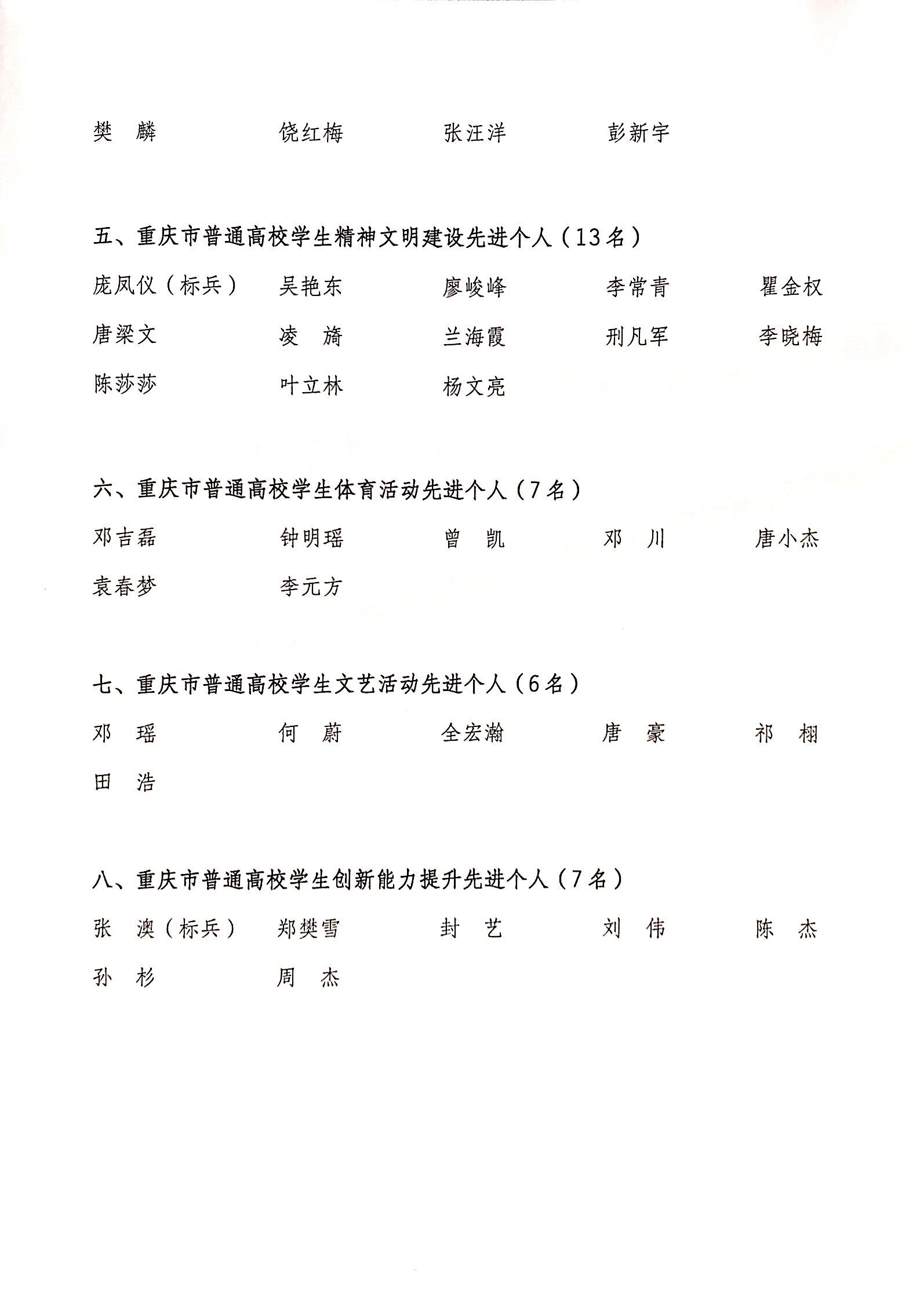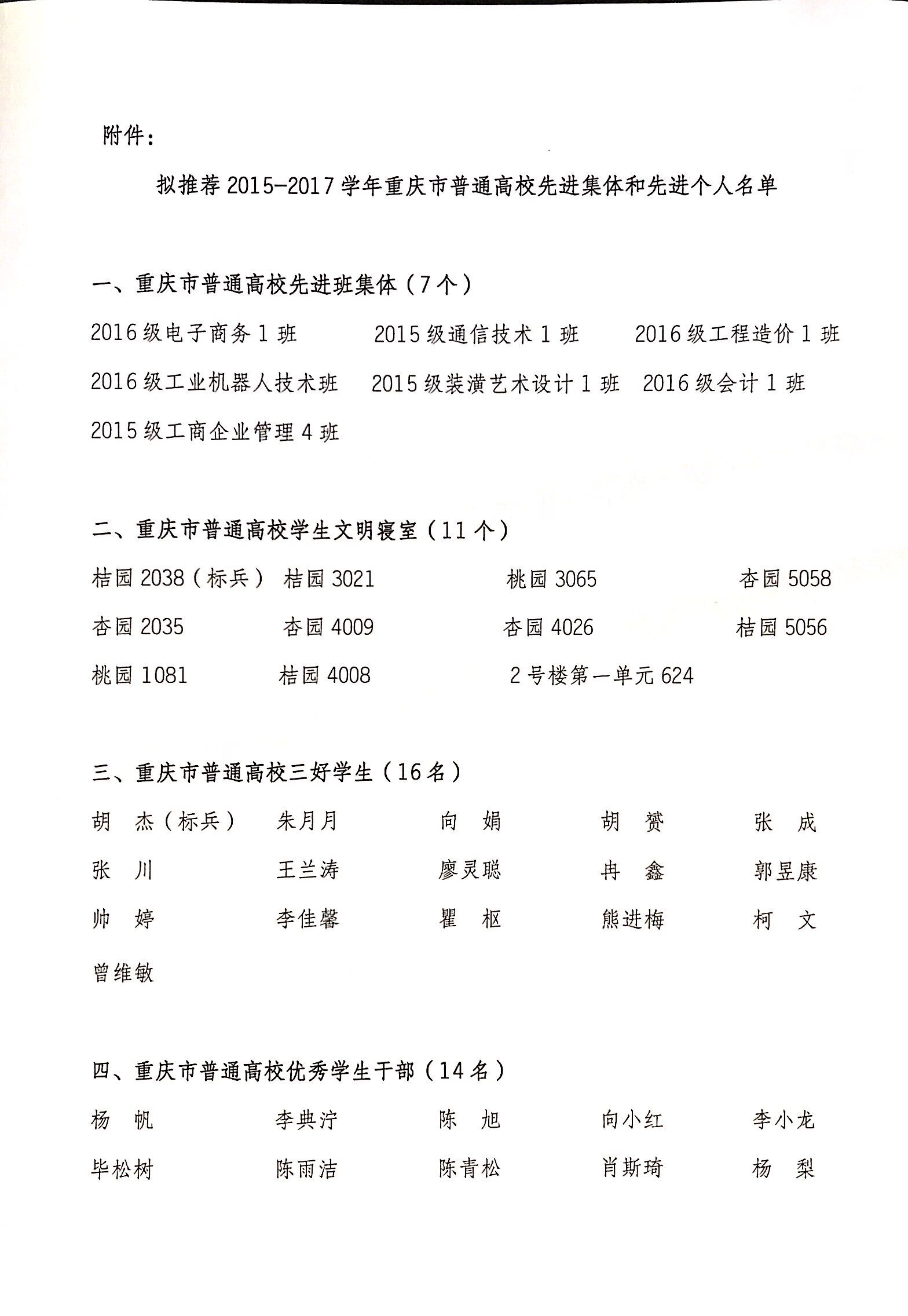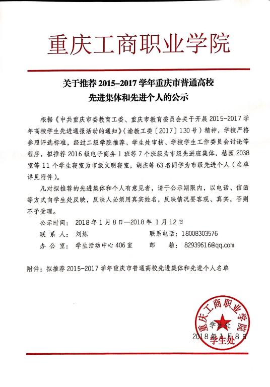 关于推荐2015-2017学年重庆市普通高校先进集体和先进个人的公示