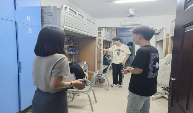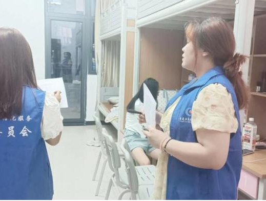 活动简介:2024年9月7日,两校区网格员对大一新生寝室进行公物维修走访,记录公物损坏及学生反馈。本次走访了解到大一新生的生活状况,并对其安全问题进行提醒,网格员以实际行动积极践行“我为同学办实事”。