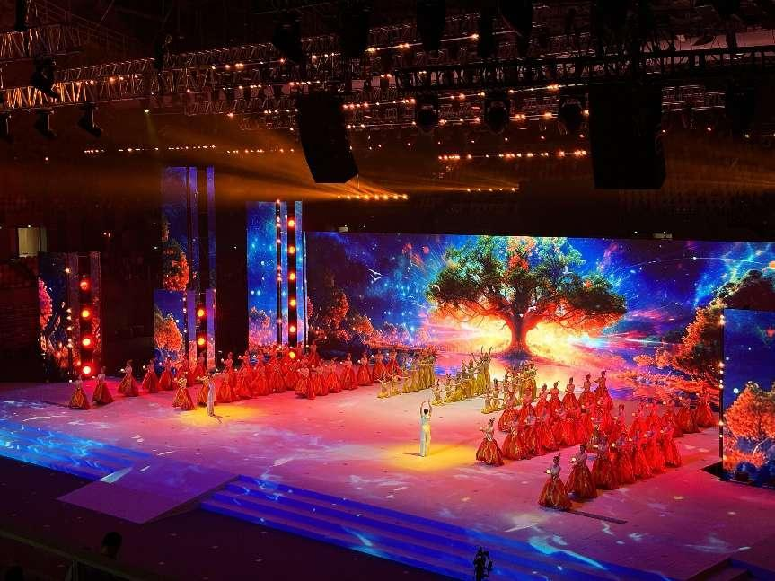 12.学生演员参加第七届残运会开幕式演出。
