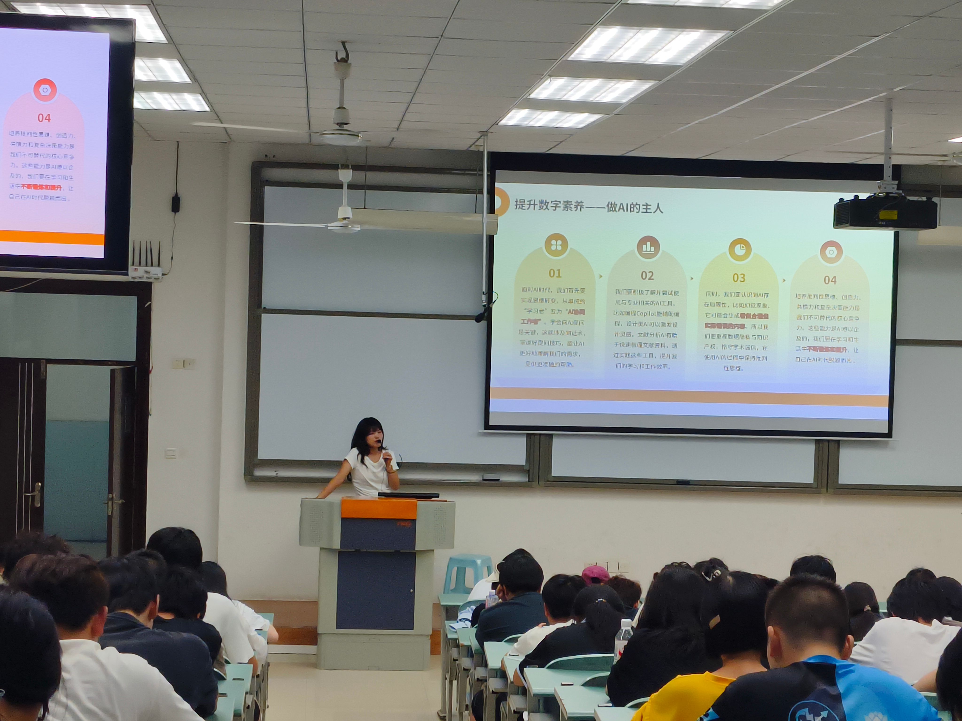 新能源汽车学院紧扣AI发展趋势与数字素养提升需求,引导学生将个人成长融入国家发展战略,树立科技报国的远大志向。