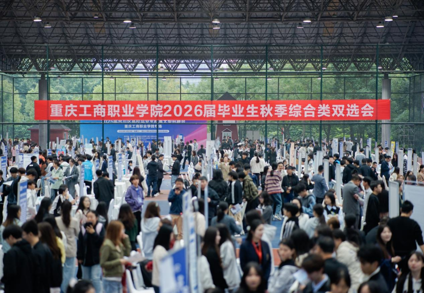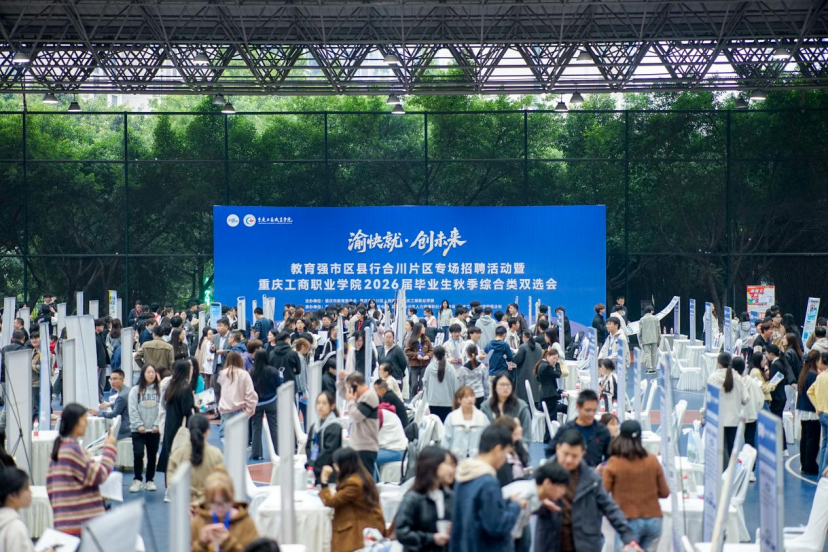 渝快就、创未来。10月29日,我校2026届毕业生秋季综合类双选会在合川校区风雨球场顺利举行。