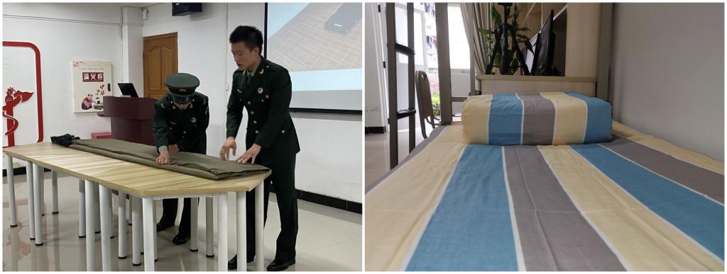 家居整理类特色课程,以退役军人为主体,注重示范带动作用的发挥,重点教授床上三件套整理技巧,桌面物品收纳,衣物折叠,推动文明寝室建设,培养学生健康向上的生活方式,提高学生健康防范意识,提高生活质量,营造卫生、文明、温馨的生活环境。