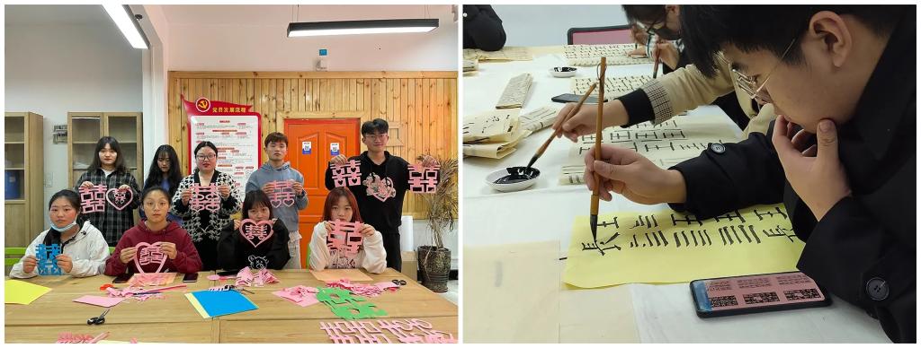 中华优秀传统文化是中华民族的根和魂,特色课程中的软笔书法着重从笔画、结构和章法练习入手,学习创作书法作品;剪纸艺术则重点讲授构成形式、起稿、剪刻、贴裱基础,学习运用剪纸的基本技法,唤起对剪纸艺术的热爱。