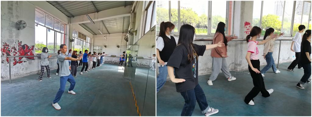 太极拳课让学生在一招一式中,感受拳法的刚柔相济,圆活自然。