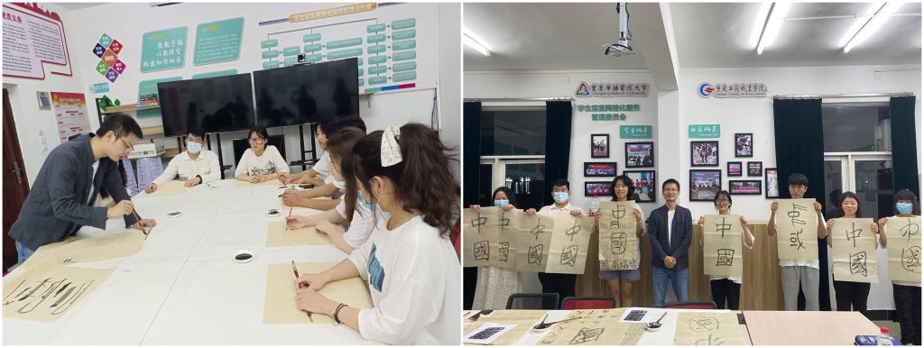 书法课上,老师教授汉字文化,传授书写技艺,通过一笔一划的专注让学生体验传统文化。