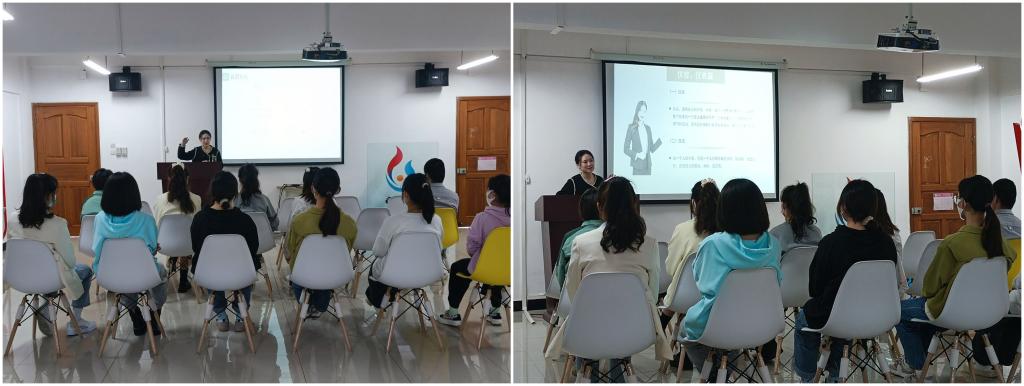 仪容仪表小讲堂中老师跟同学们分享如何修饰自身的仪容仪表。