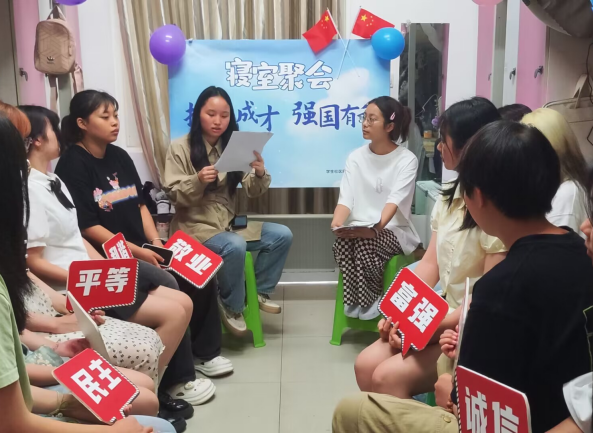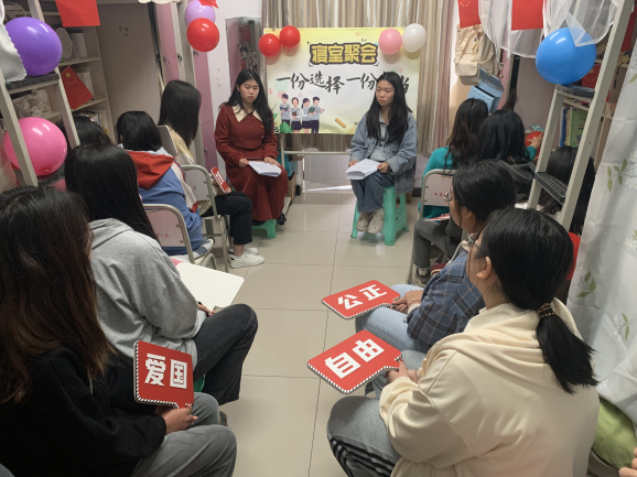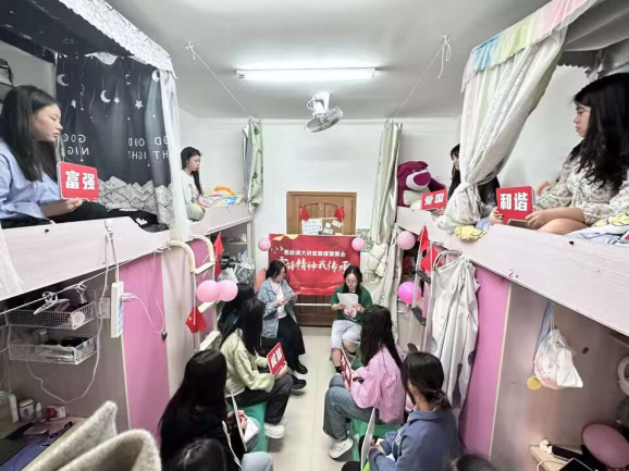 “一站式”学生社区建设坚持以党团建设为引领,以学生教育、服务、管理为主线,以德智体美劳全面发展为目标。为推动学生社区党建,思政引领工作走深、走实。以思想碰撞、经验分享、榜样示范、典型带动等方式贴近学生、吸引学生、引领学生,开展“思政讲堂—寝室“聚”会走近学生身边”系列活动。