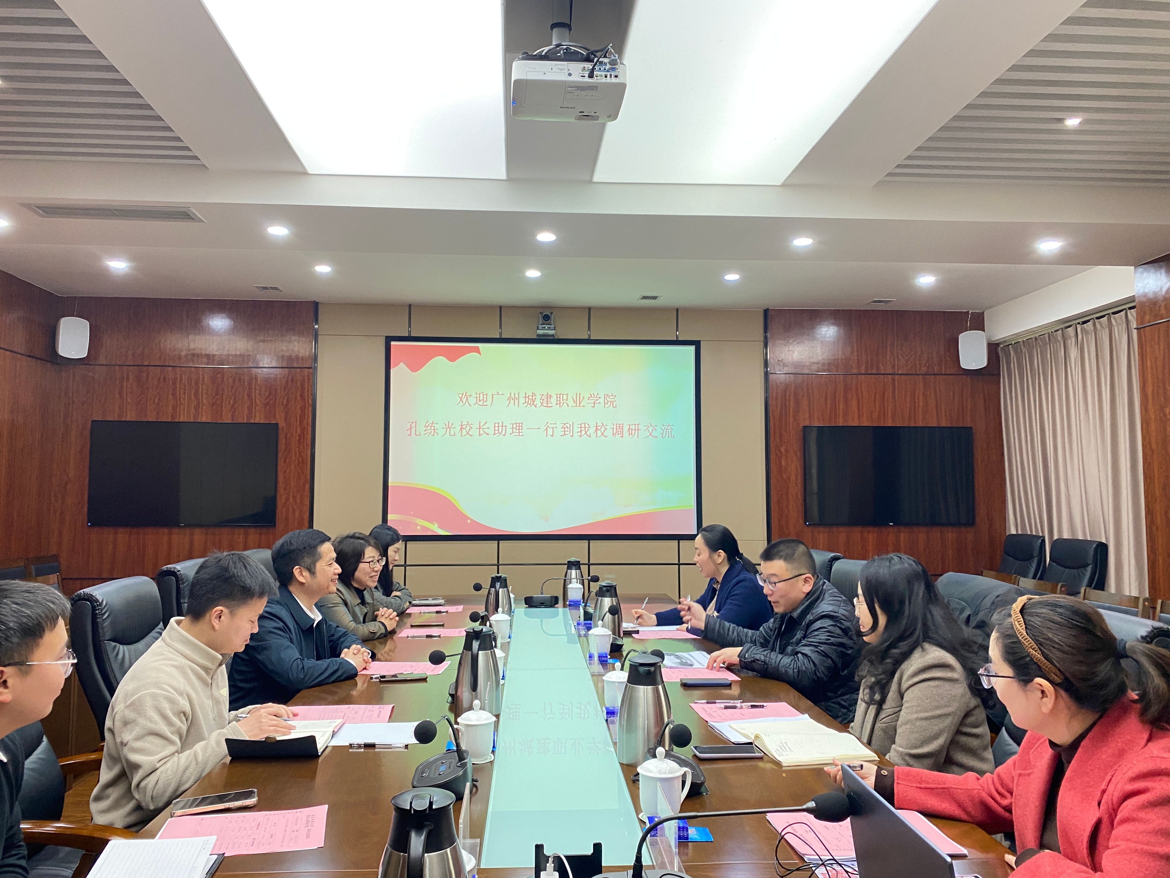 2025年3月11日下午,广州城建职业学院校长助理孔练光率队赴我校开展调研交流活动。我校党委学工部部长周同磊及相关部门负责人参加座谈并陪同参观交流。