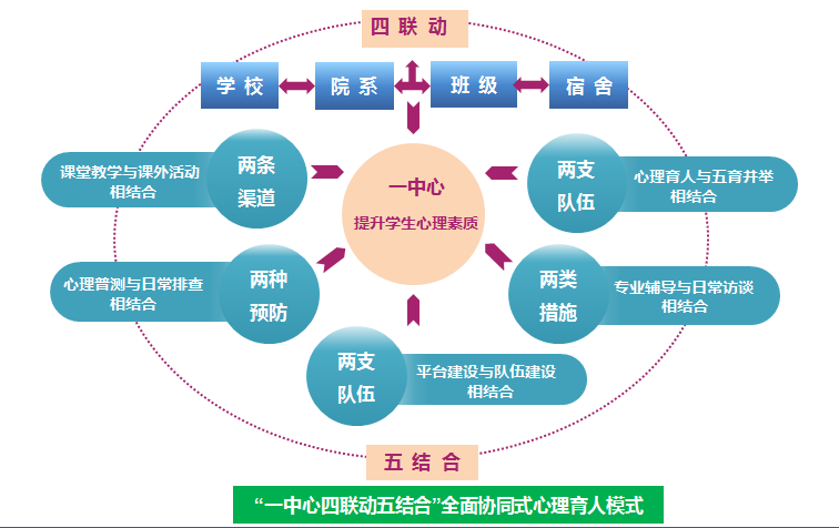 学校心理健康教育坚持“预防为主,防治结合”的工作理念,围绕学校”四有”工商学子培养,以积极提高学生的心理素质为中心目标,部署“学校-院系-班级-宿舍”四级联动心理育人网络。抓好“五个结合”,即:通过课堂教学与课外活动相结合,普及心理知识,浸润学生心田;心理健康与五育相结合,推进德心共育,提升全面素质;心理普测与日常排查相结合,注重早期发现,构建心理防护;专业干预与谈心帮扶相结合,科学辅导干预,保障学生安危;平台建设与队伍建设相结合,完善软件硬件,做好心育保障。经过近几年建设,学校心理健康教育工作水平不断提升,工作成效日益显著。