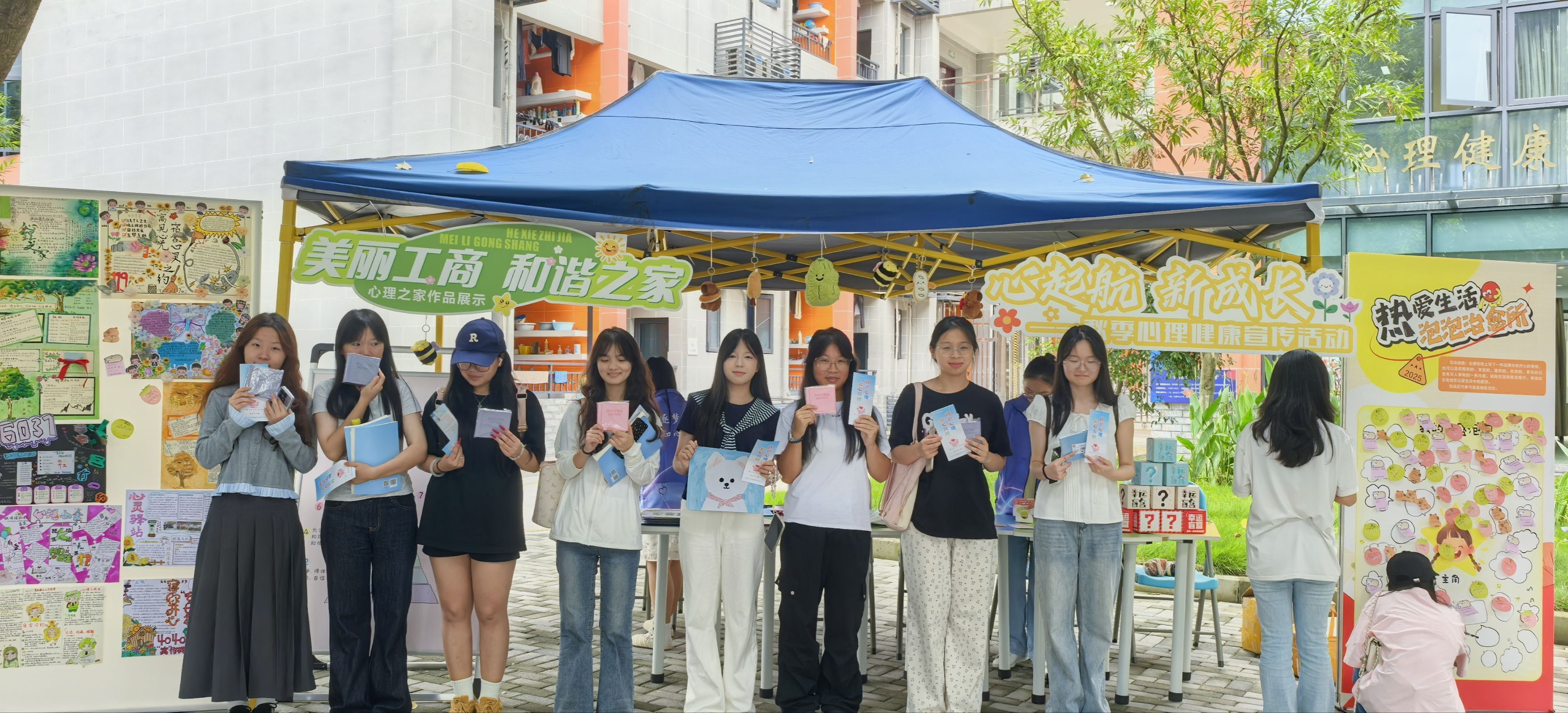 活动期间,心理中心发放了心理知识宣传册,倡导同学们提高心理保健意识。通过“热爱生活,泡泡治愈所”活动,引导同学们主动记录并分享生活中的积极事件,形成积极情绪能量场,提升幸福感。现场还展示了学生“心理之家”优秀作品和泥塑艺术创作作品,使广大师生在观赏互动体验中感受到艺术疗愈的魅力。
