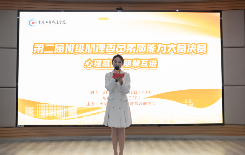 12月10日,我校在合川校区举办“心理赋能,朋辈互进”第二届班级心理委员素质能力大赛。来自各二级学院的18位选手围绕情绪与压力管理、恋爱情感、生命教育、学业规划、挫折应对等主题,进行了精彩的宣讲展示。经激烈角逐,城市建设与工程学院郭芳、会计与金融学院吴静怡荣获大赛一等奖。